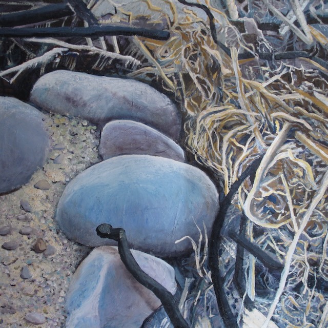 Most of my paintings are based on observations in nature, for instance pebbles on the beach or the bark of a tree. I use a sketchbook and a camera to assist in the process of active looking.